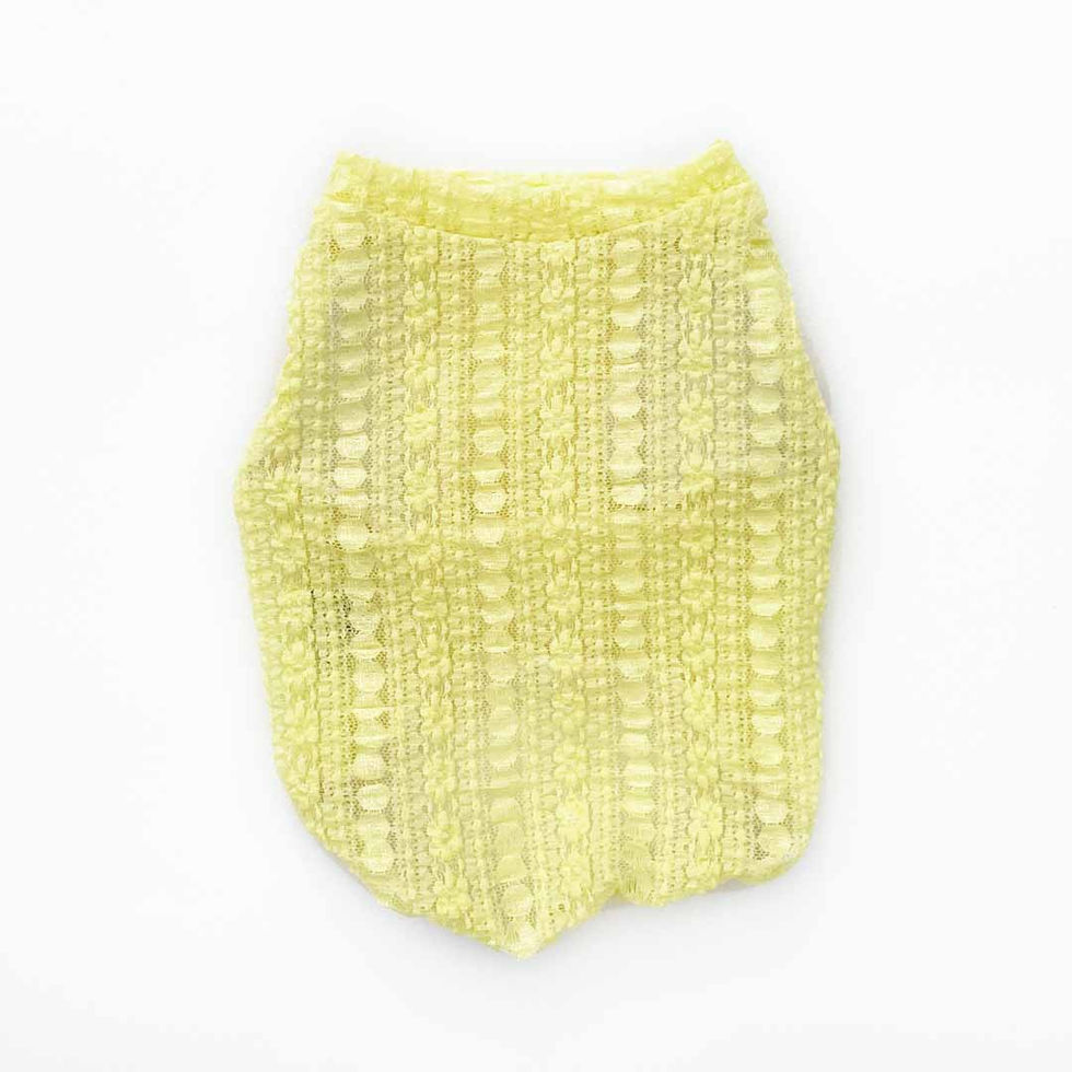 レモンイエローのレース柄、ゴージャスな雰囲気のタンクトップ